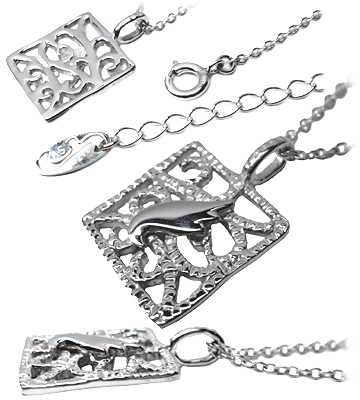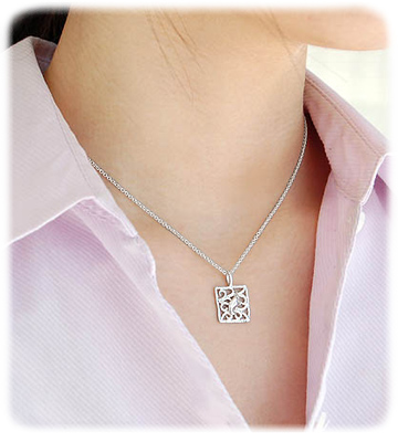 唐草透かし模様に天使の羽をあしらったシルバーネックレス
