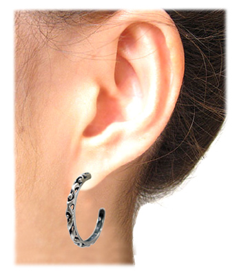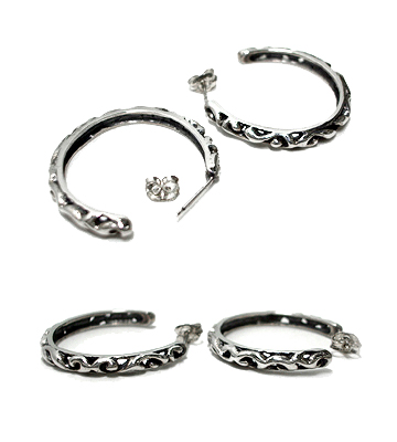 立体的な唐草透かし模様のイブシシルバーピアス
