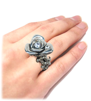 | 「Rapture」ラベンダー&ブルー石をそえた大きな薔薇のリング |
