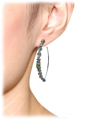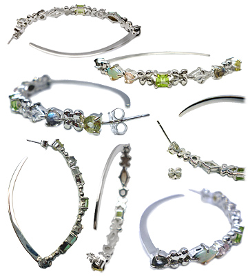 | 7種の石をマーキス型に連ねたゴージャスなシルバーピアス |