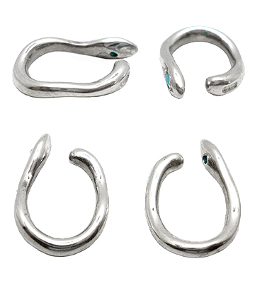 ターコイズを留めたスネークヘッドデザインのシルバーイヤークリップ