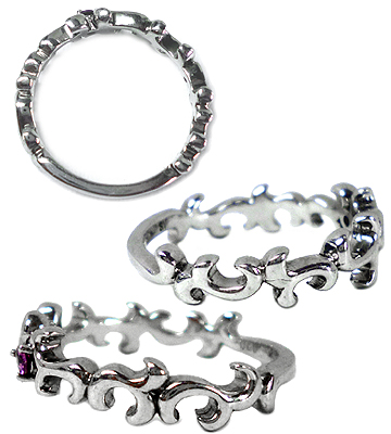ロードライトガーネットが煌めく唐草透かしデザインのシルバーリング