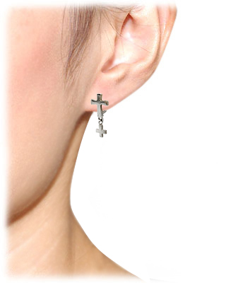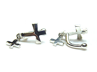 クロスが揺れるシルバーイヤークリップ