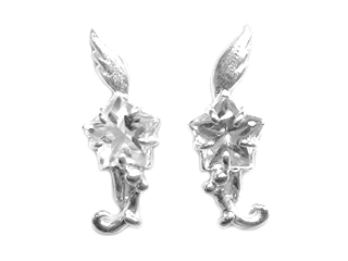 羽とスター石で流れ星をイメージしたシルバーピアス