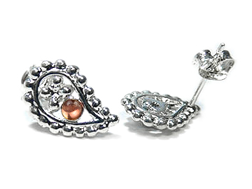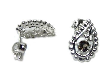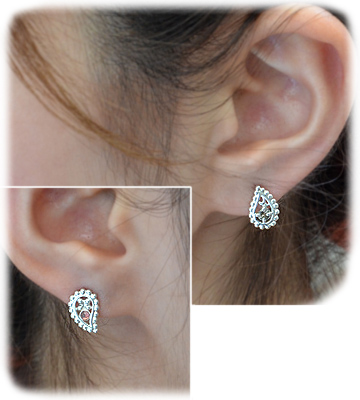左右非対称のぺーズリーデザイン&ストーンのシルバーピアス