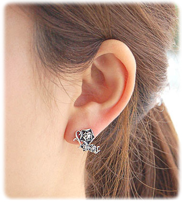 薔薇の花をイメージしたイブシシルバーピアス
