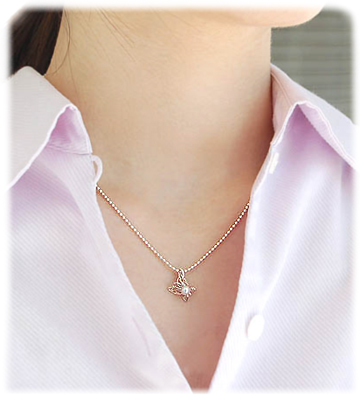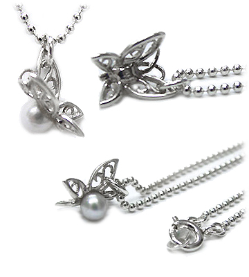 パールつき蝶デザインのシルバーネックレストップ