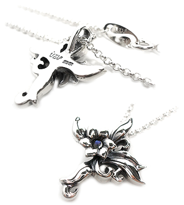 | ラウンドストーンを留めたフラワークロスデザインのシルバーネックレス |