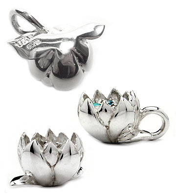| Lotus「Blue」蓮の花デザインの多石付きシルバーネックトップ |