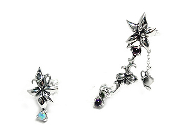 月モチーフに唐草と石をあしらったシルバーミューズピアス