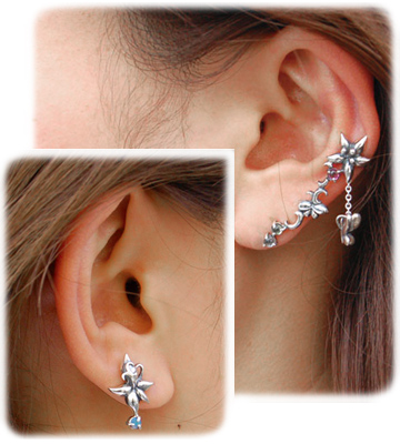 「花蝶風月」シリーズ 花蝶のイブシシルバーイヤークリップ