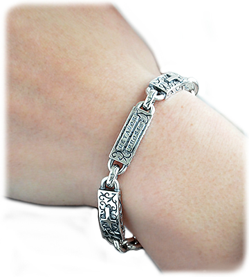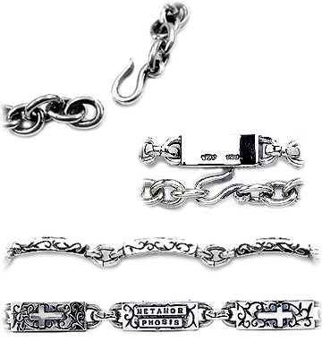 「転生」唐草模様とクロスデザインのイブシシルバーブレスレット