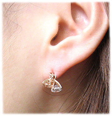 ハート&ペアシェイプのカット石が煌めくピンクゴールドピアス