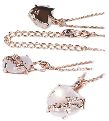 愛と平和を象徴するハートのローズクォーツを永遠に輝くダイヤモンドを配したクロスで優しく包む永遠の愛を誓うアミュレット。恋を叶える神秘の力を与えます。