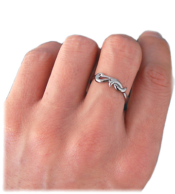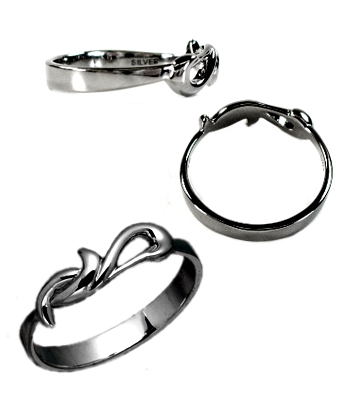 【訳アリ】唐草透かしデザインのブラックロジウムシルバーリング