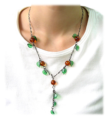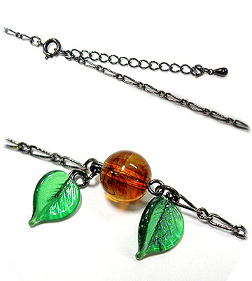 【訳アリ】木の実&葉っぱデザインビーズパーツのY字ネックレス