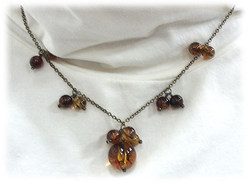 【訳アリ】琥珀カラーがシックな大人を演出するビーズネックレス