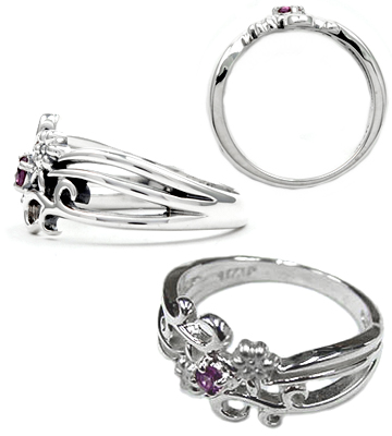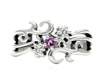 ロードライトガーネットが煌めくお花スカシデザインシルバーリング