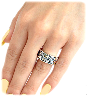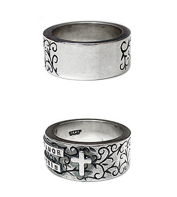 唐草模様柄にクロスをデザインしたイブシシルバーリング