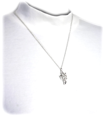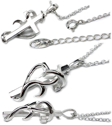 唐草を絡めた立体的なクロスデザインのシルバーネックレス