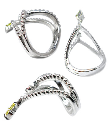 唐草透かし模様にダイヤモンドが煌めく2連風シルバーリング