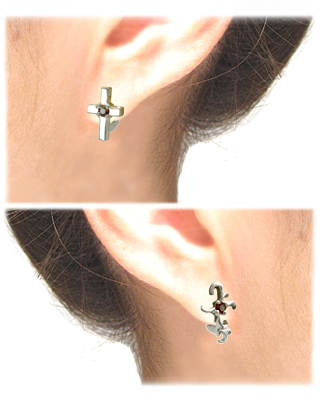 ガーネットが煌めく2種のクロスデザインシルバーイヤークリップ