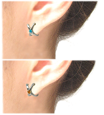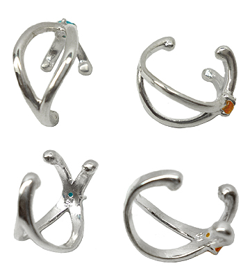ラウンドストーンがポイントのXデザインシルバーイヤークリップ