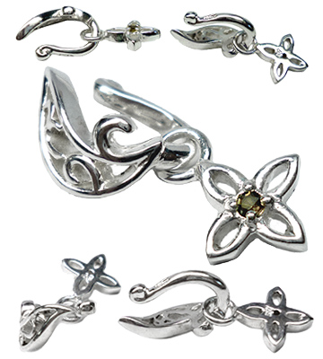 スモーキークォーツのお花が揺れるシルバーイヤーリング(クリップ)
