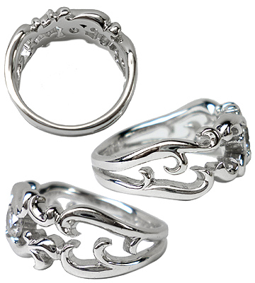 豪華にキュービックジルコニアが煌めく唐草デザインシルバーリング