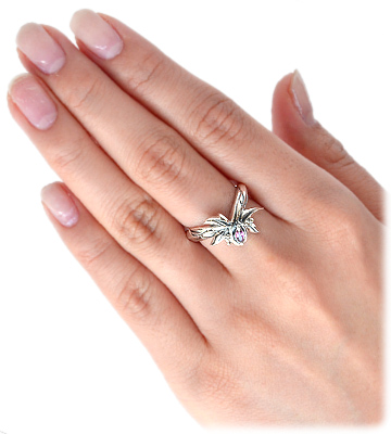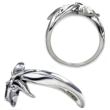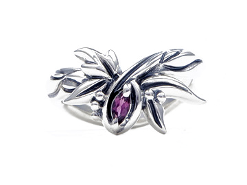 ロードライトガーネットが煌く植物デザインのイブシシルバーリング
