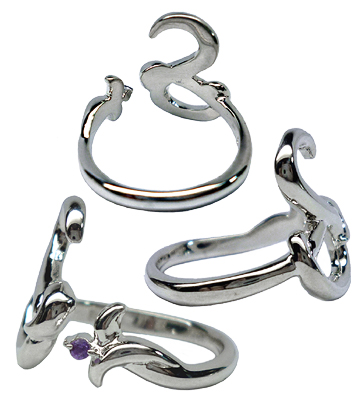 | アメジストを留めたアルファベット「S」デザインのシルバーフリーリング |