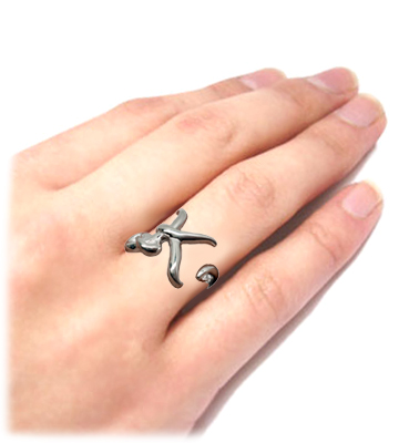 | アクアマリンを留めたアルファベット「K」デザインのシルバーフリーリング |