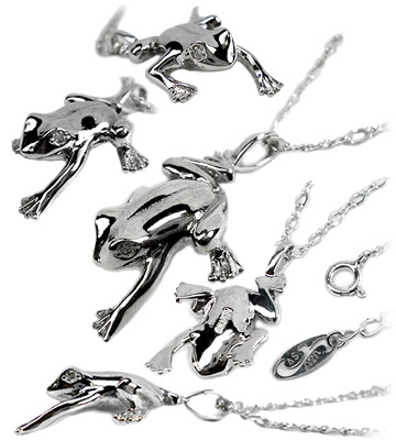 ダイヤモンドの瞳が煌めくカエルのシルバーネックレス