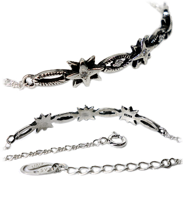5石が煌めくアンティークデザインのイブシシルバーブレスレット
