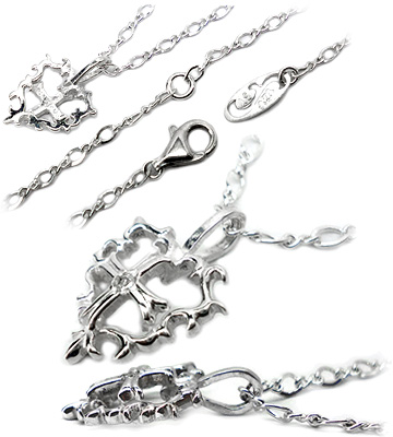ダイヤが煌めく唐草スカシハート&クロスのシルバーネックレス