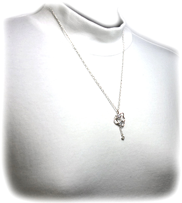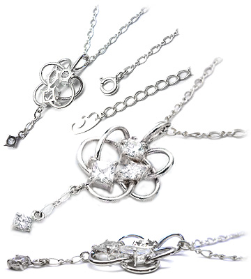 | ピンクストーンが煌めく星の軌道の立体的デザインシルバーネックレス |